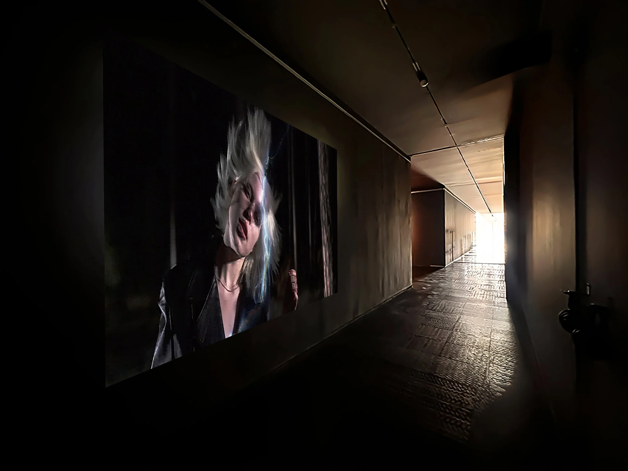 In most of the video presentations, the existing exhibition space was used so that the space appears like a film set from the projected video work.
