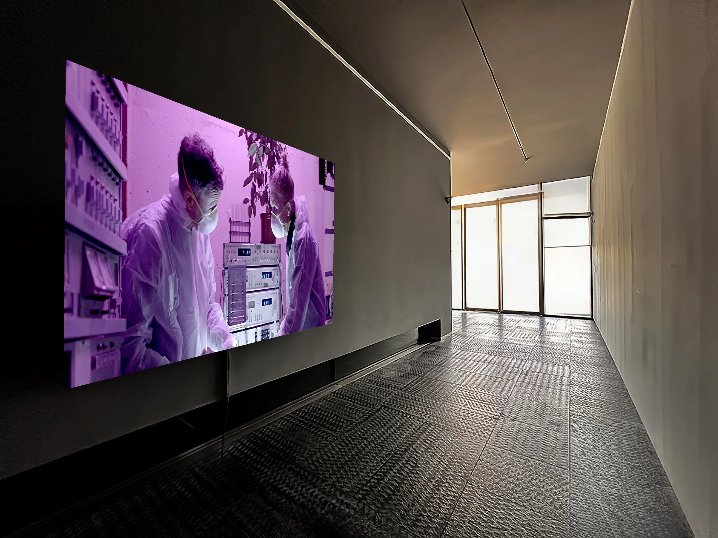 With her work RIDE OR DIE, which premiered at the KINDL, Nina E. Schönefeld fo- cuses on the pivotal moment when relentless, radical resistance begins – specifi- cally, resistance against the political shift to the right in Europe and the associated threats to the separation of powers and freedom of the press. Her video aesthetic fearlessly combines political thriller, investigative documentary and AI-generated imagery to craft a trenchant dystopia. The story, set in 2039, is told from the per- spective of a journalist couple living in a surveillance state permeated by totalitar- ian structures, where AI governs every aspect of daily life and suppresses dissent. In the face of existential threat, the protagonists join an underground resistance to overthrow the system. The imperative – and the work’s title – RIDE OR DIE, stead- ily drives them towards radicalisation with the aim of political upheaval.