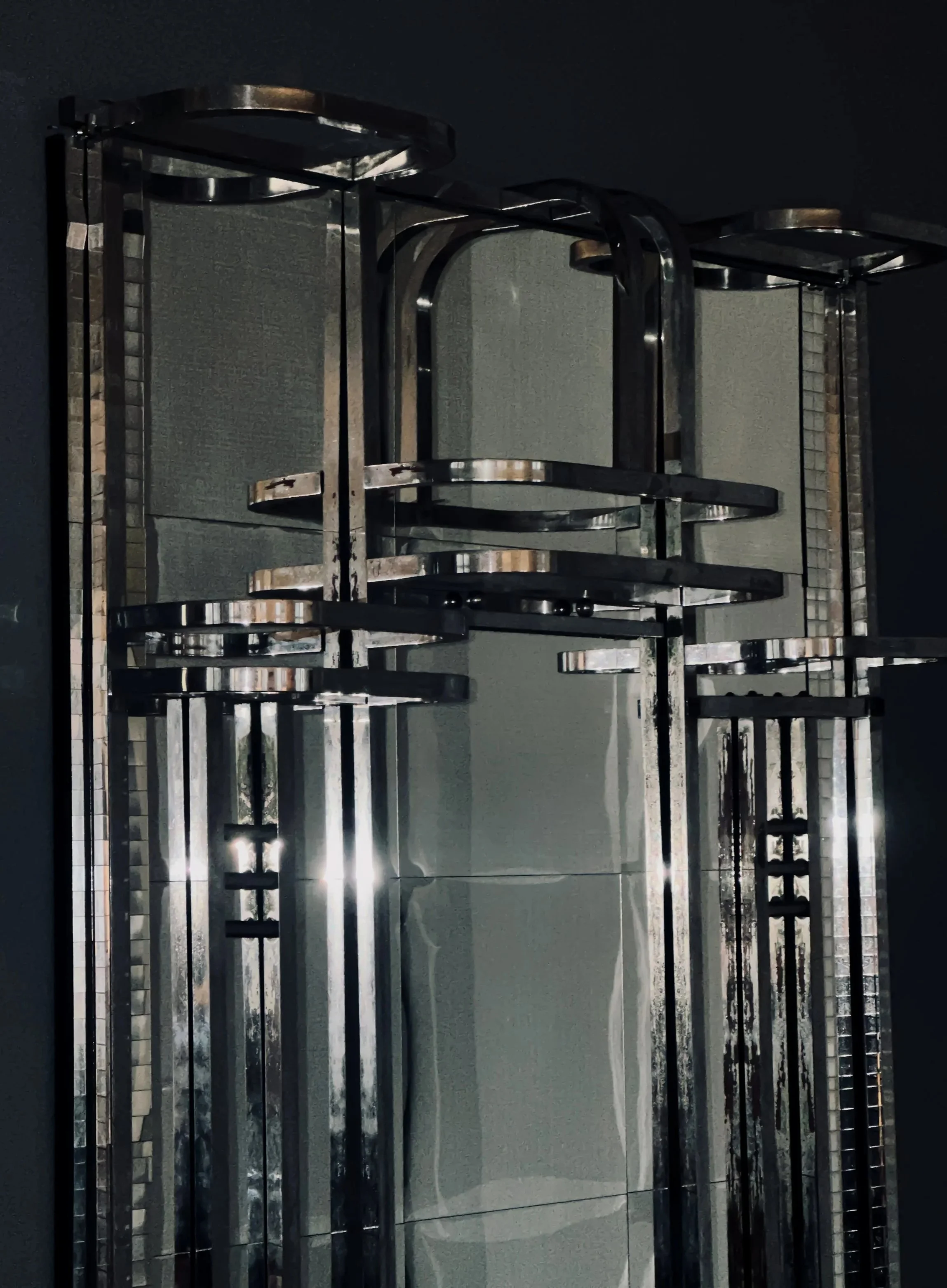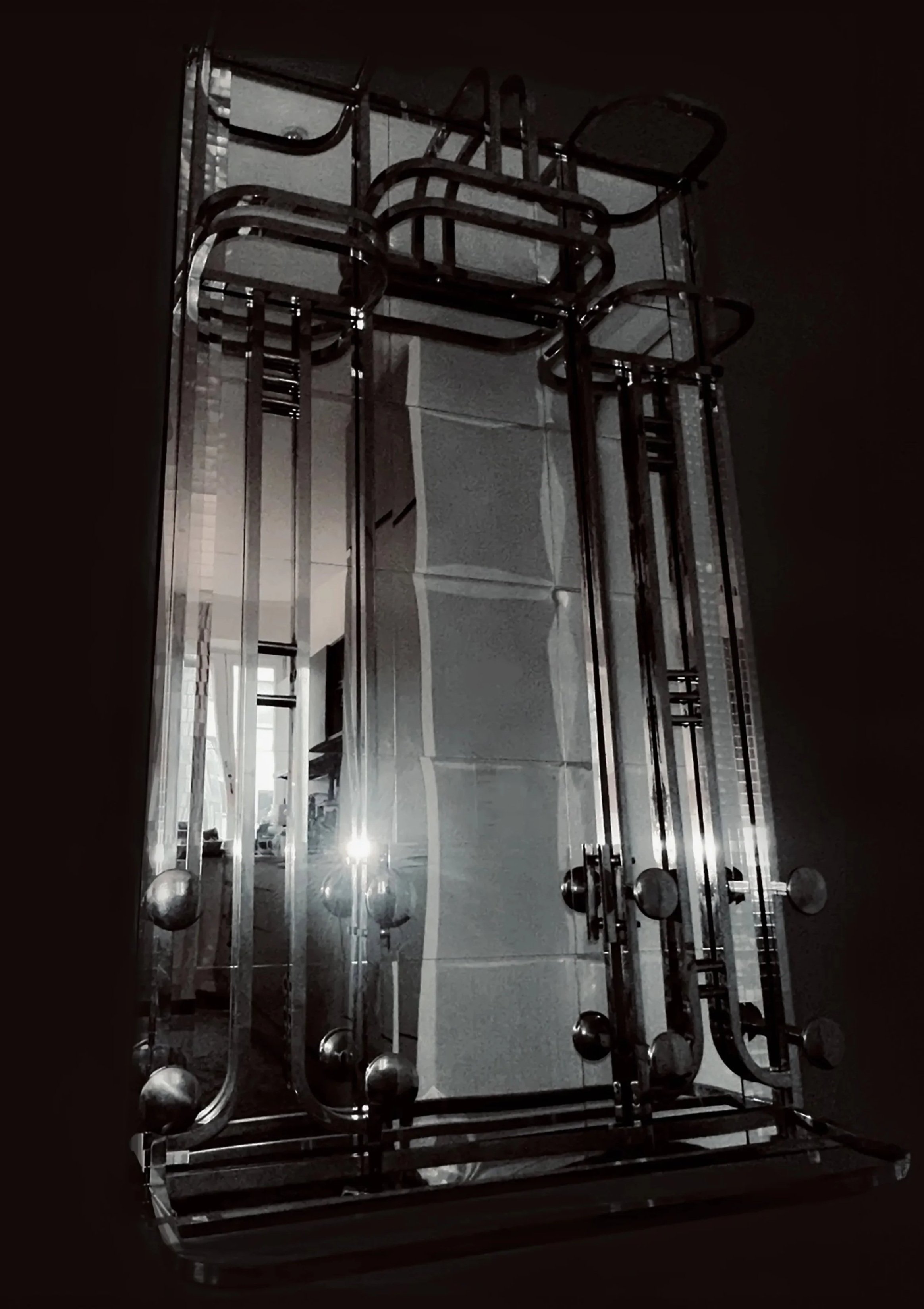 LOOK INTO THE MIRROR, 2024 Metal, mirror elements, LED